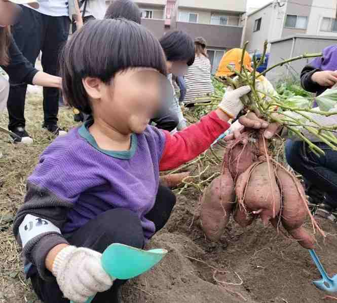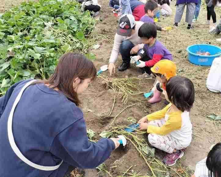 10月25日(土)西武庫南公園近くにある畑にお芋ほりに行きました。畑に到着すると子どもたちはワクワクの表情で、夢中でお芋ほりを楽しんでいました。大きいお芋や小さいお芋、デコボコしたお芋など色々な形のお芋が土の中からわっさわっさと出てきました。どんなお芋料理を食べようかな?楽しみですね。